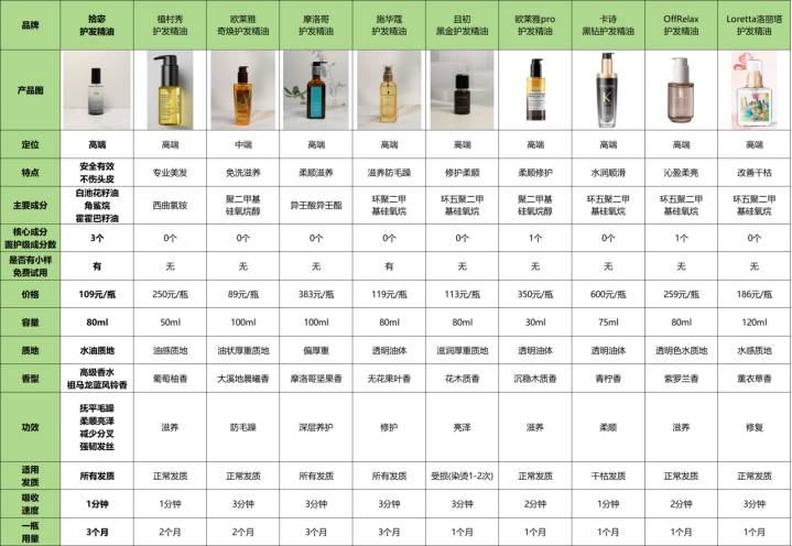是不是看了选购技巧,还想直接看实测产品?我整理了几款实测的护发精油核心表现,做成表格放下面,希望这些真实感受能帮你挑到适合的~